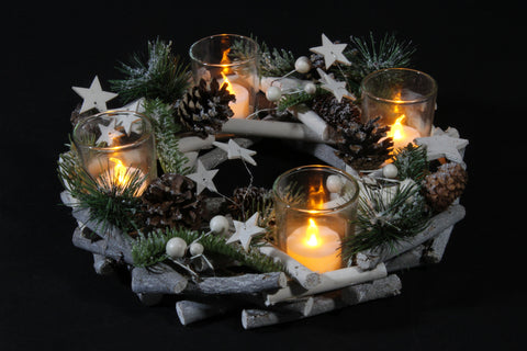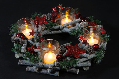ghirlanda centrotavola natalizio in legno con portacandele - 30 cm