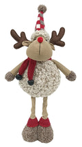Una tenera renna girl standing in poliestere, con cappello in fantasia e finiture effetto maglia/pelliccia.
